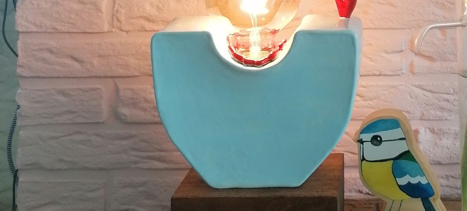 Groene lamp geïnspireerd door de oceaan, rode draad met schakelaar: €95.00 (exclusief verzendkosten) 20cm hoog