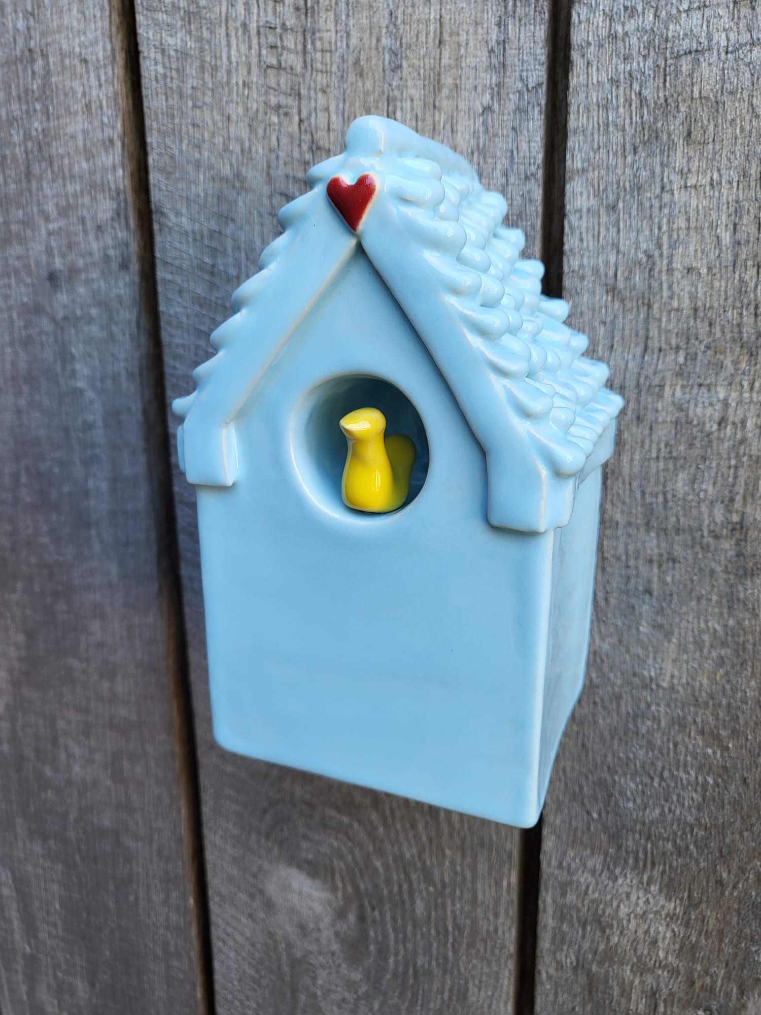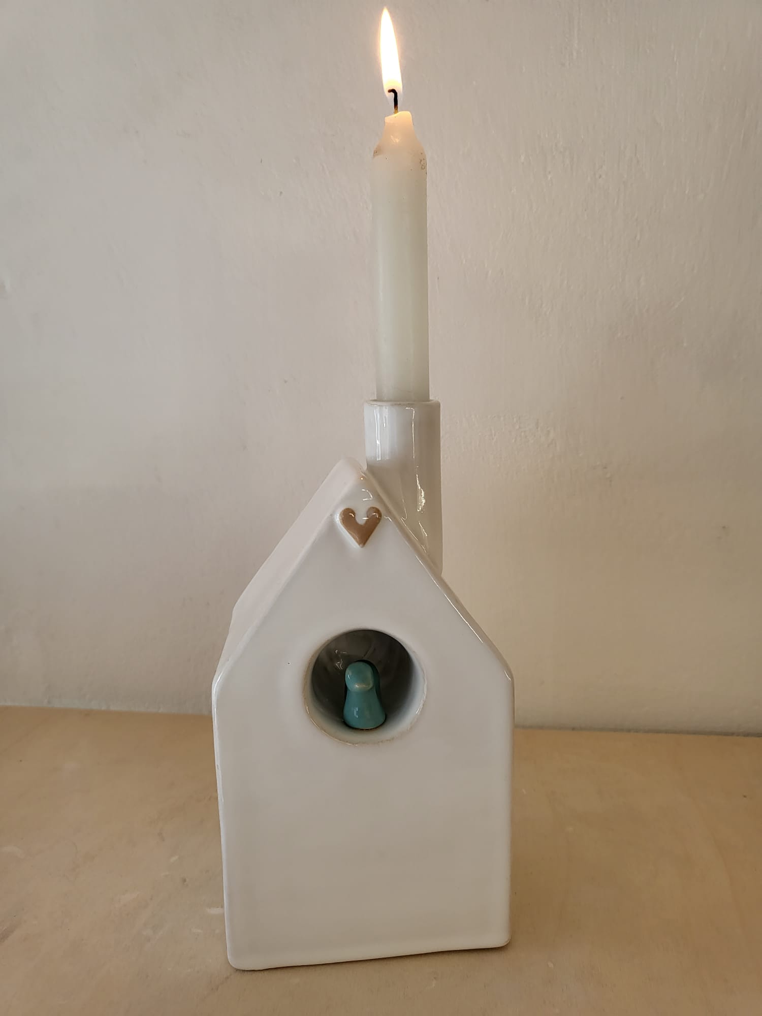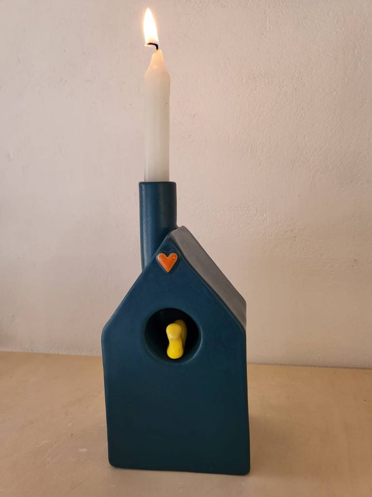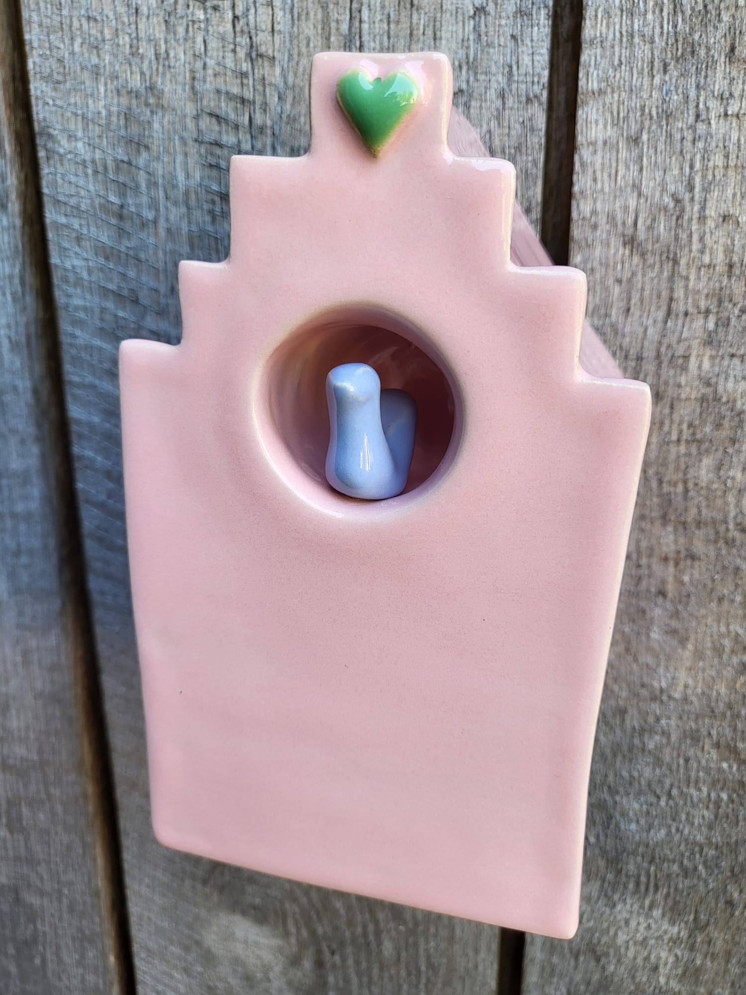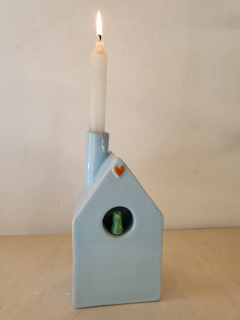 Verkrijgbaar in tafel model of muur model. Muur model kan zowel opgehangen worden als neergezet worden, er is een ophang gat aan de achterkant van het huisje.